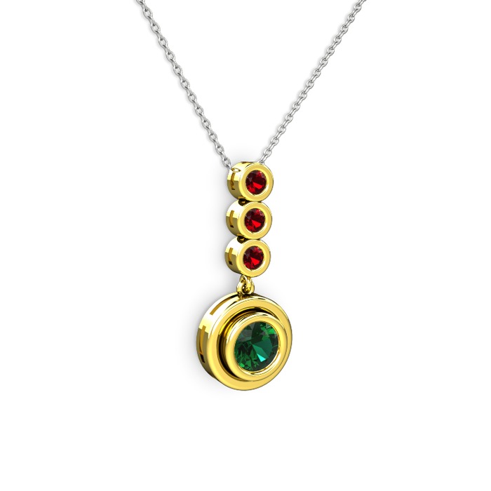 Yeşil kuvars ve garnet 8 ayar altın kolye (40 cm beyaz altın rolo zincir)