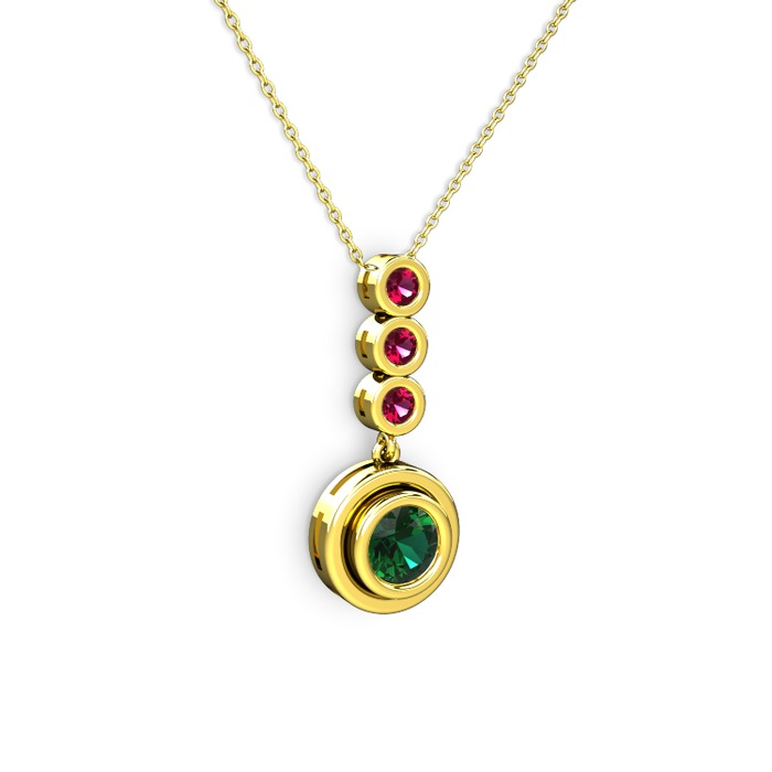 Yeşil kuvars ve rodolit garnet 8 ayar altın kolye (40 cm altın rolo zincir)