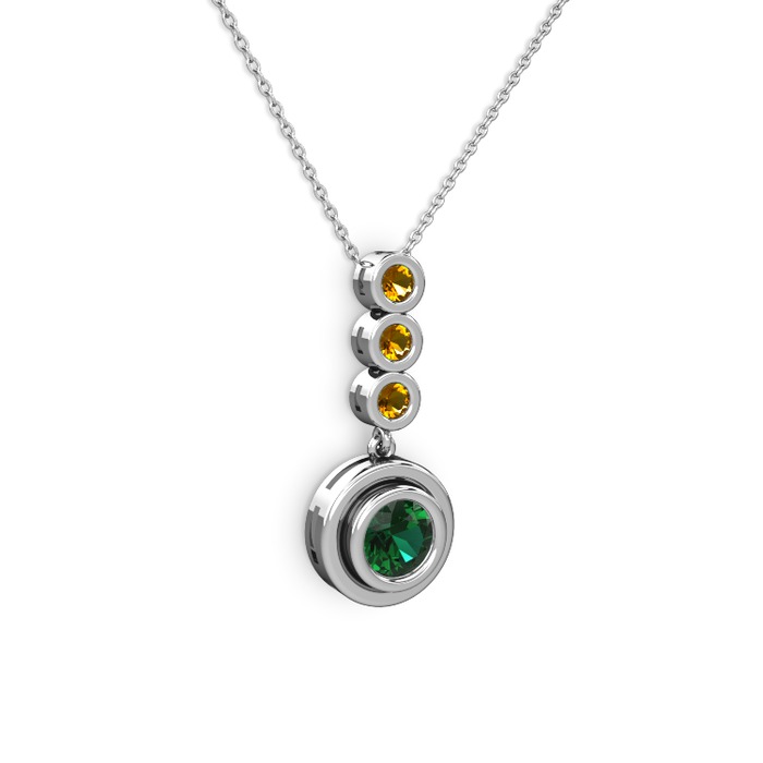 Yeşil kuvars ve sitrin 18 ayar beyaz altın kolye (40 cm beyaz altın rolo zincir)