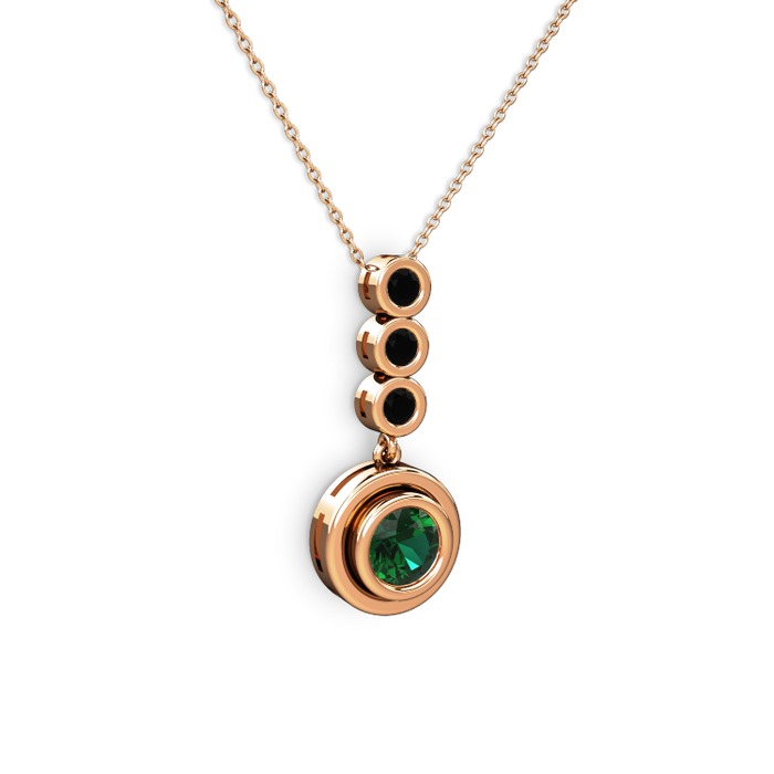 Yeşil kuvars ve siyah zirkon 18 ayar rose altın kolye (40 cm gümüş rolo zincir)