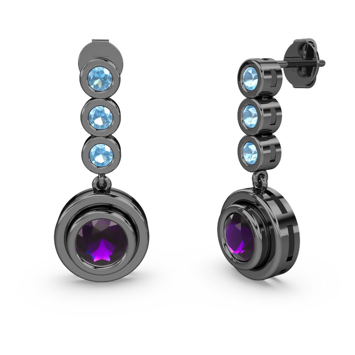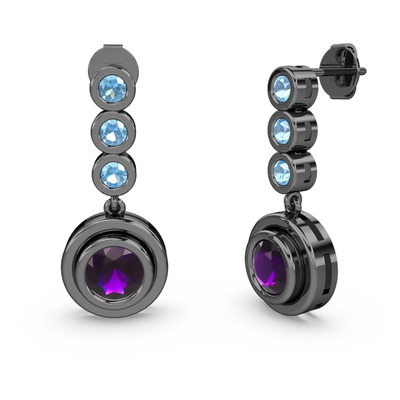 Akuamarin ve ametist 925 ayar siyah rodyum kaplama gümüş küpe