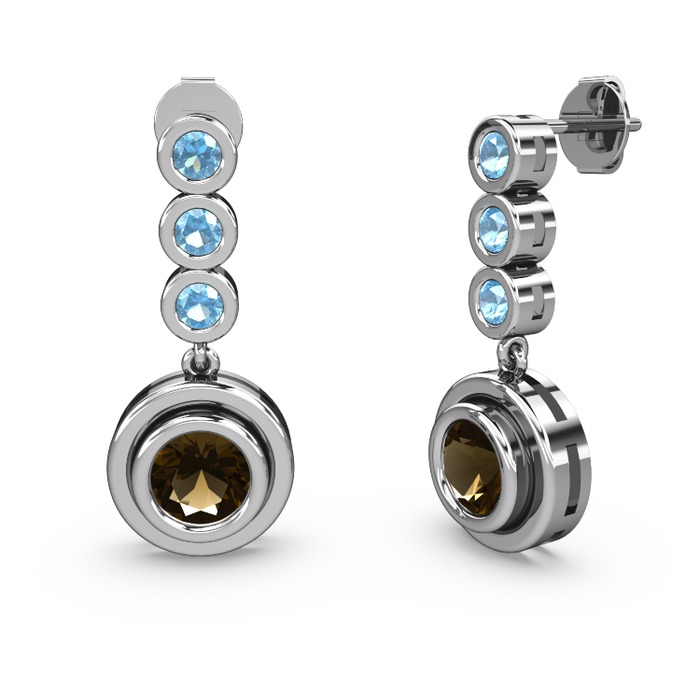 Akuamarin ve dumanlı kuvars 925 ayar gümüş küpe