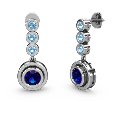Akuamarin ve lab safir 18 ayar beyaz altın küpe