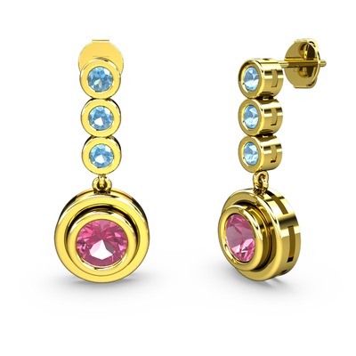 Akuamarin ve pembe kuvars 8 ayar altın küpe