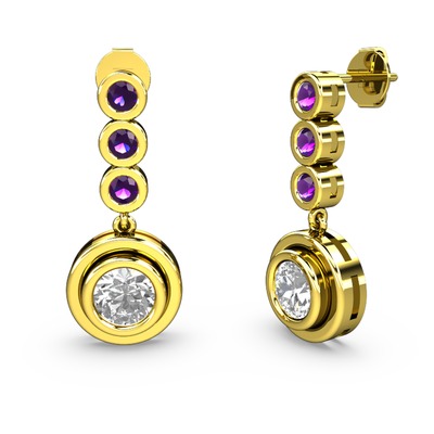 Ametist ve elmas 8 ayar altın küpe (1.36 karat)