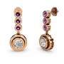 Ametist ve elmas 925 ayar rose altın kaplama gümüş küpe (1.36 karat)
