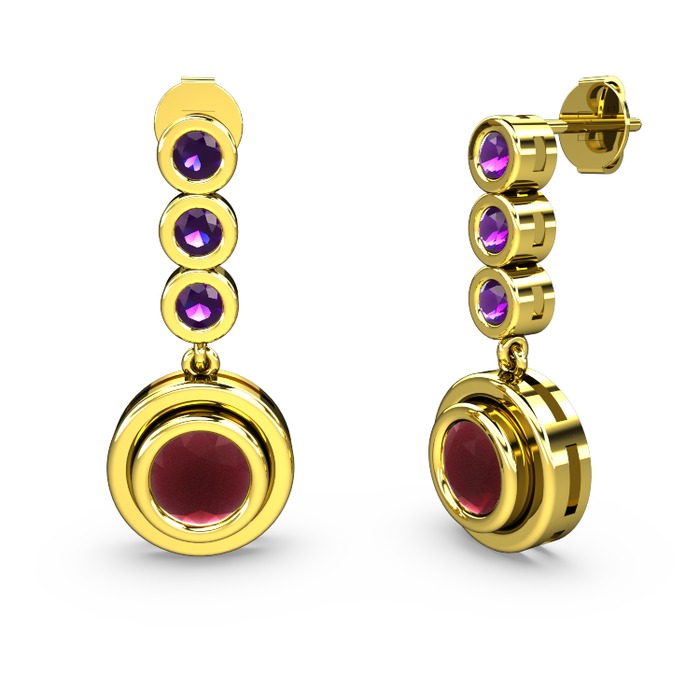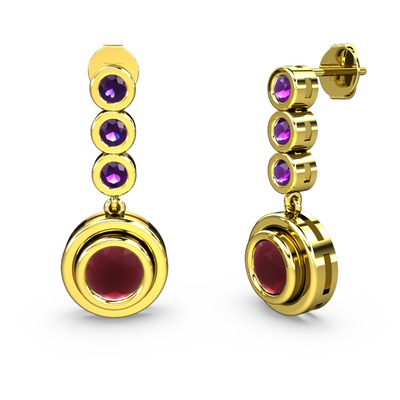 Ametist ve kök yakut 925 ayar altın kaplama gümüş küpe