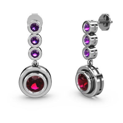 Ametist ve rodolit garnet 14 ayar beyaz altın küpe