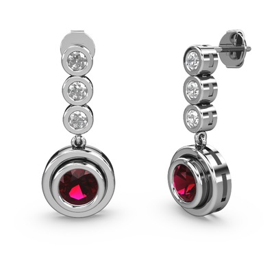 Beyaz zirkon ve rodolit garnet 8 ayar beyaz altın küpe