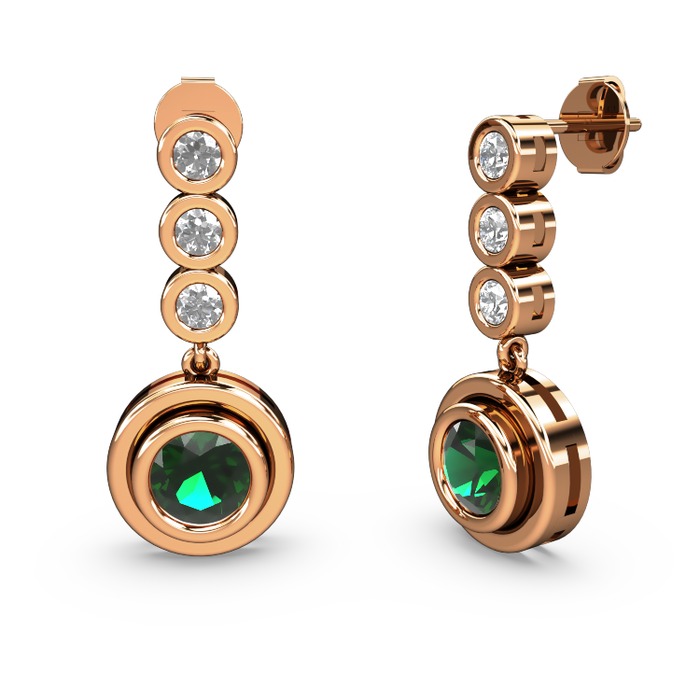 Beyaz zirkon ve yeşil kuvars 14 ayar rose altın küpe