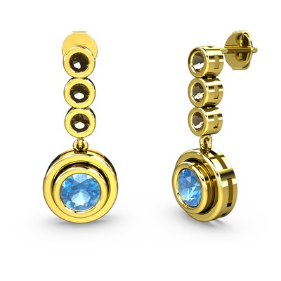 Dumanlı kuvars ve akuamarin 14 ayar altın küpe