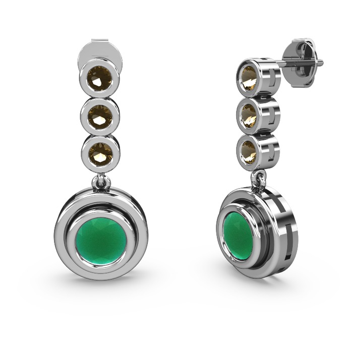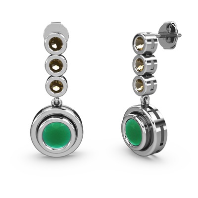 Dumanlı kuvars ve kök zümrüt 14 ayar beyaz altın küpe