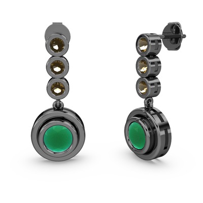 Dumanlı kuvars ve kök zümrüt 925 ayar siyah rodyum kaplama gümüş küpe