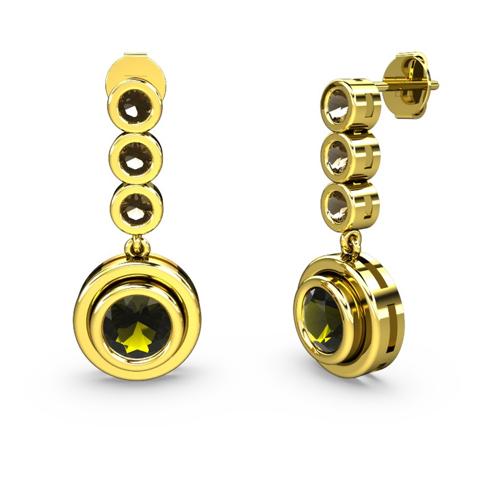 Dumanlı kuvars ve peridot 18 ayar altın küpe