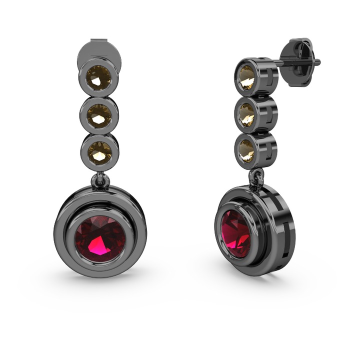 Dumanlı kuvars ve rodolit garnet 925 ayar siyah rodyum kaplama gümüş küpe