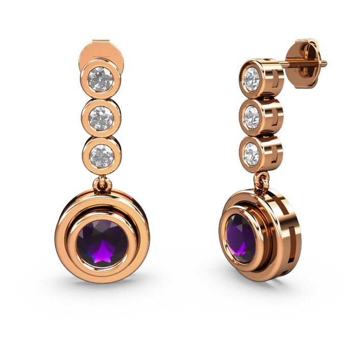 Elmas ve ametist 14 ayar rose altın küpe (0.66 karat)