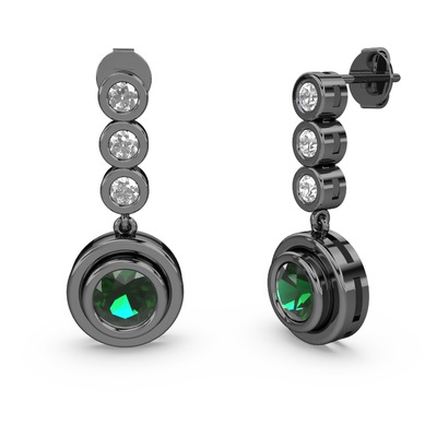 Elmas ve yeşil kuvars 925 ayar siyah rodyum kaplama gümüş küpe (0.66 karat)
