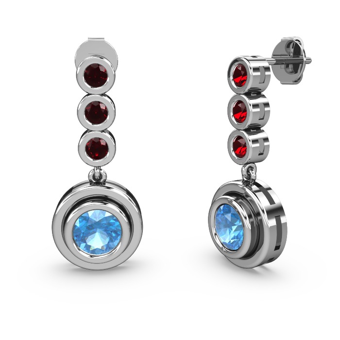 Garnet ve akuamarin 18 ayar beyaz altın küpe