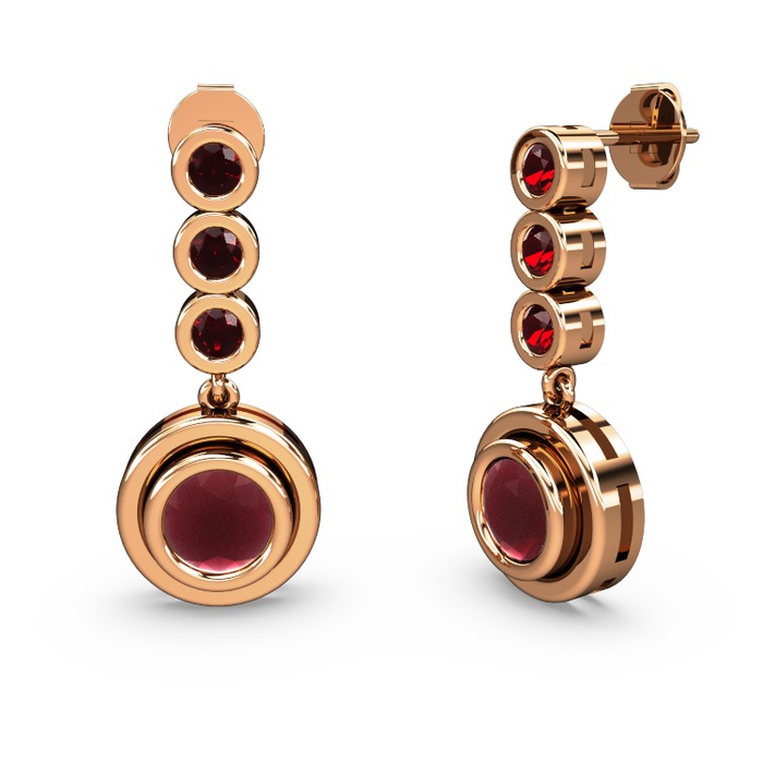 Garnet ve kök yakut 18 ayar rose altın küpe
