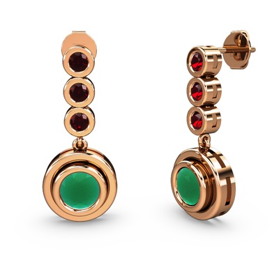 Garnet ve kök zümrüt 14 ayar rose altın küpe