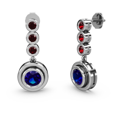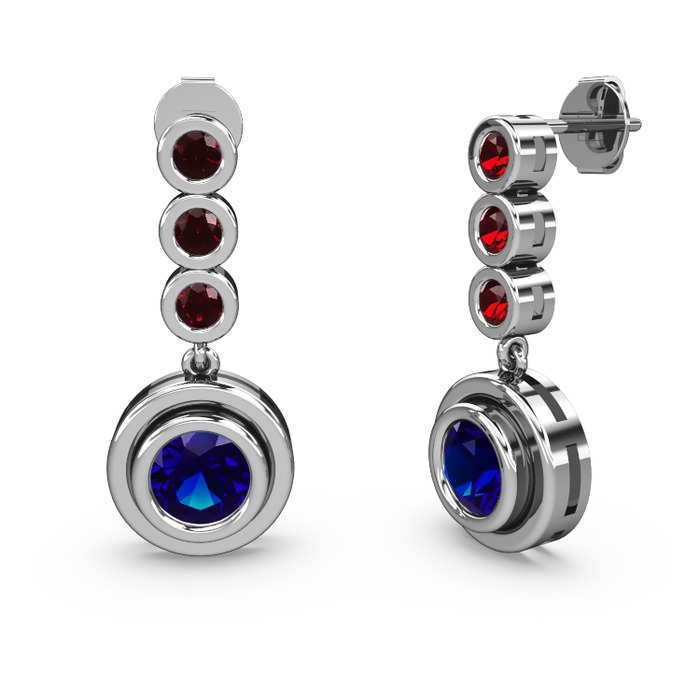 Garnet ve lab safir 18 ayar beyaz altın küpe