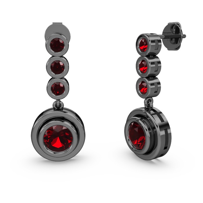 Garnet 925 ayar siyah rodyum kaplama gümüş küpe