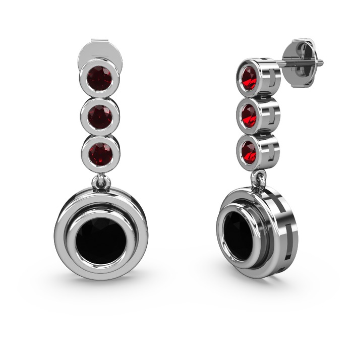 Garnet ve siyah zirkon 18 ayar beyaz altın küpe