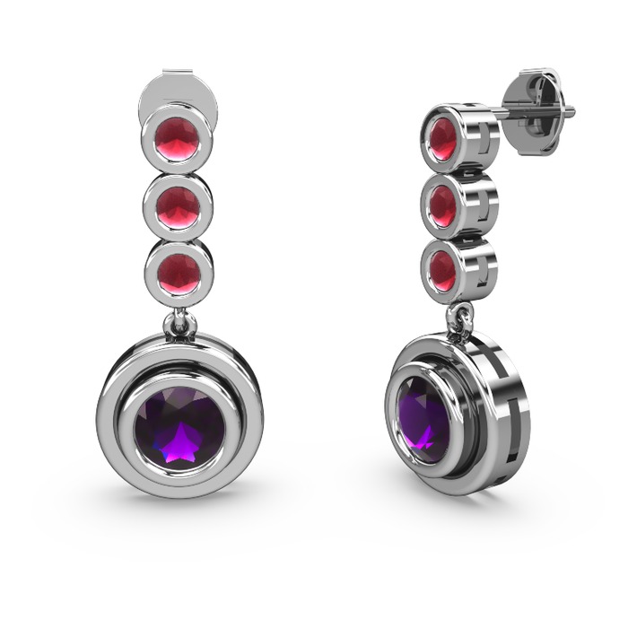 Kök yakut ve ametist 18 ayar beyaz altın küpe