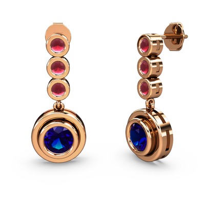 Kök yakut ve lab safir 18 ayar rose altın küpe