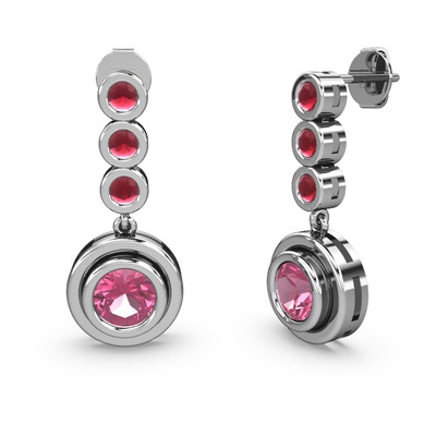 Kök yakut ve pembe kuvars 925 ayar gümüş küpe