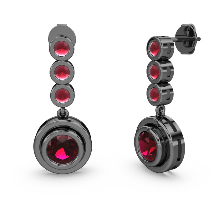 Kök yakut ve rodolit garnet 925 ayar siyah rodyum kaplama gümüş küpe