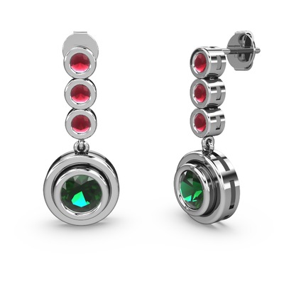 Kök yakut ve yeşil kuvars 18 ayar beyaz altın küpe