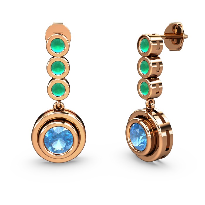 Kök zümrüt ve akuamarin 14 ayar rose altın küpe