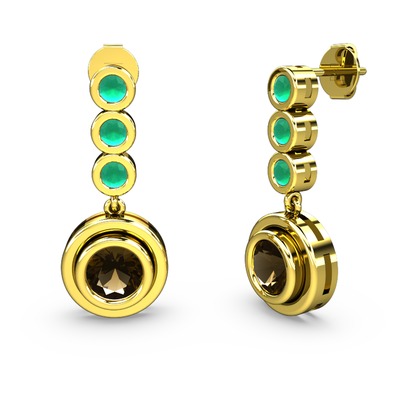 Kök zümrüt ve dumanlı kuvars 925 ayar altın kaplama gümüş küpe