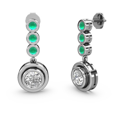 Kök zümrüt ve elmas 18 ayar beyaz altın küpe (1.36 karat)