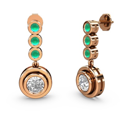 Kök zümrüt ve elmas 18 ayar rose altın küpe (1.36 karat)