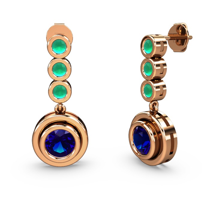 Kök zümrüt ve lab safir 8 ayar rose altın küpe