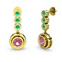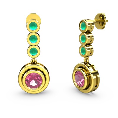 Kök zümrüt ve pembe kuvars 18 ayar altın küpe