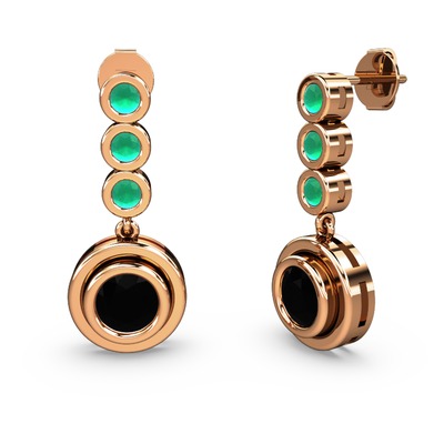 Kök zümrüt ve siyah zirkon 18 ayar rose altın küpe
