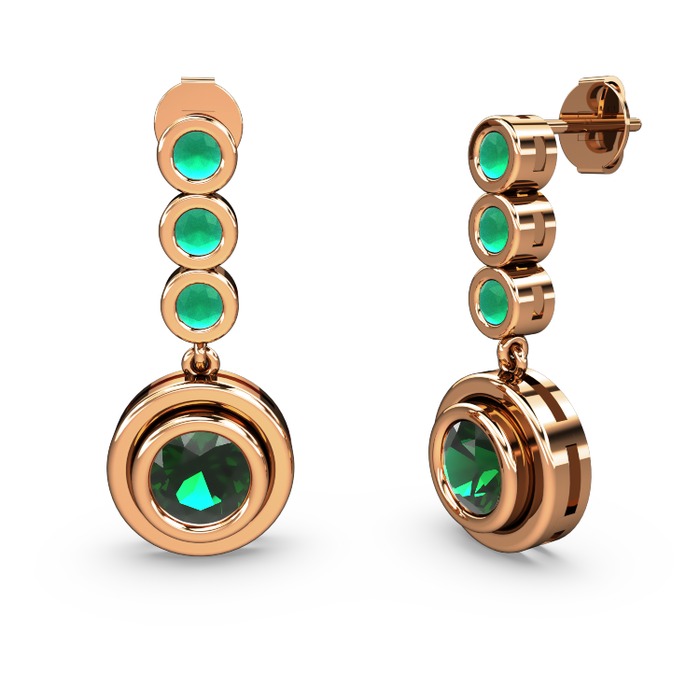 Kök zümrüt ve yeşil kuvars 18 ayar rose altın küpe