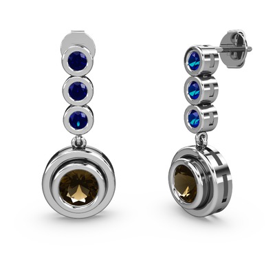 Lab safir ve dumanlı kuvars 925 ayar gümüş küpe