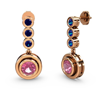 Lab safir ve pembe kuvars 18 ayar rose altın küpe