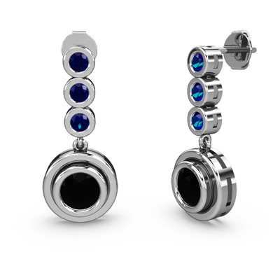 Lab safir ve siyah zirkon 925 ayar gümüş küpe