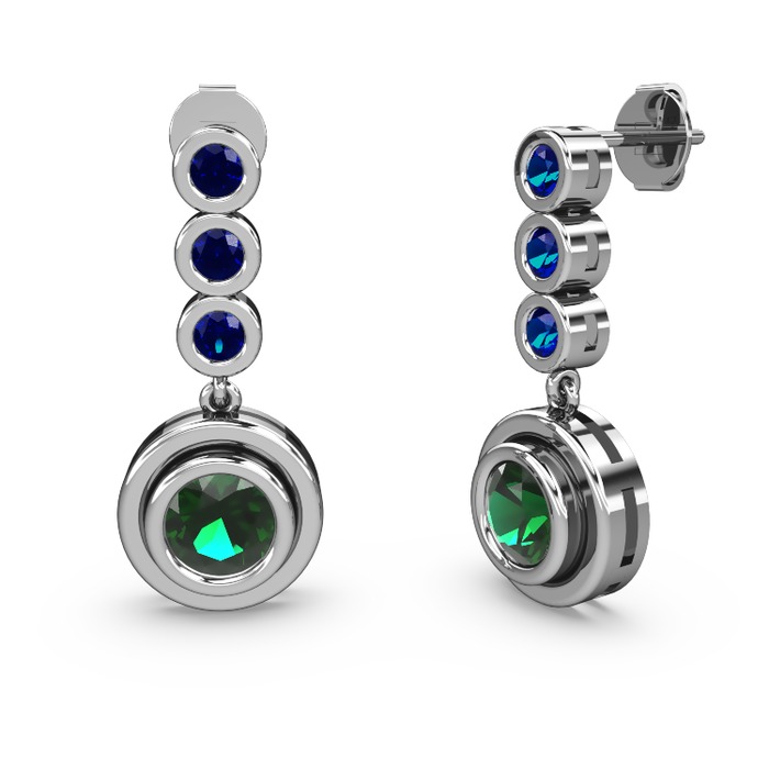 Lab safir ve yeşil kuvars 18 ayar beyaz altın küpe