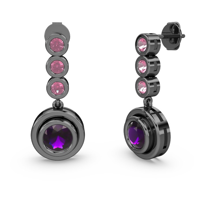 Pembe kuvars ve ametist 925 ayar siyah rodyum kaplama gümüş küpe