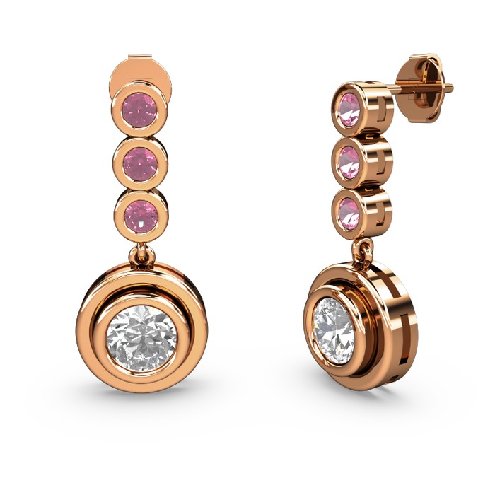 Pembe kuvars ve beyaz zirkon 8 ayar rose altın küpe