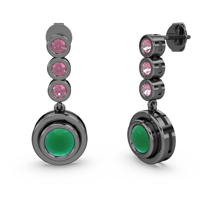 Pembe kuvars ve kök zümrüt 925 ayar siyah rodyum kaplama gümüş küpe