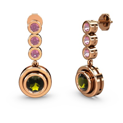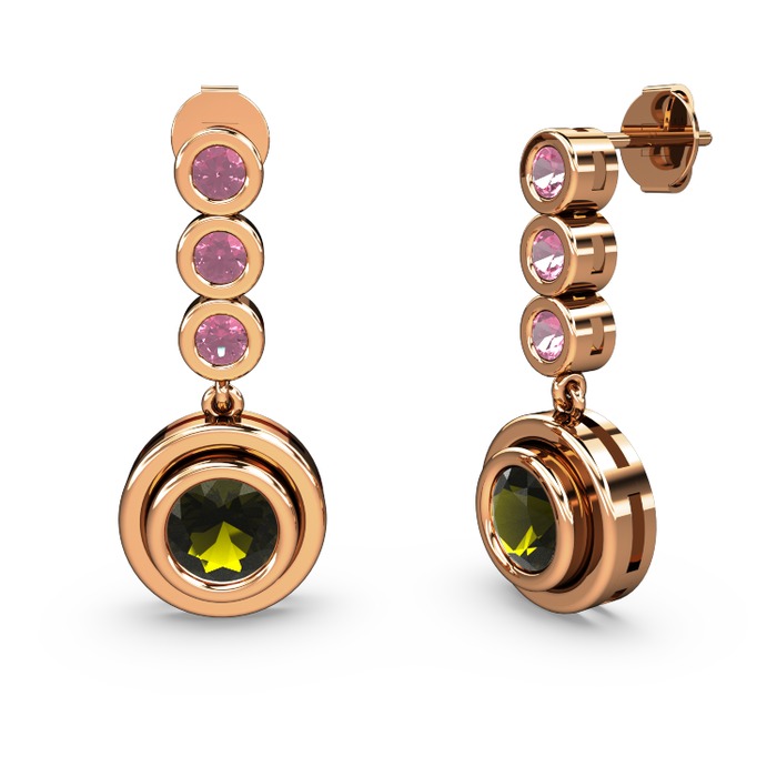 Pembe kuvars ve peridot 8 ayar rose altın küpe