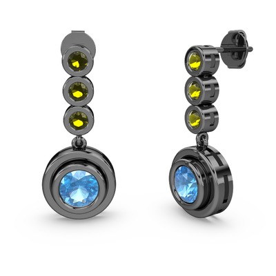 Peridot ve akuamarin 925 ayar siyah rodyum kaplama gümüş küpe