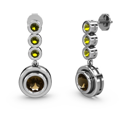 Peridot ve dumanlı kuvars 8 ayar beyaz altın küpe